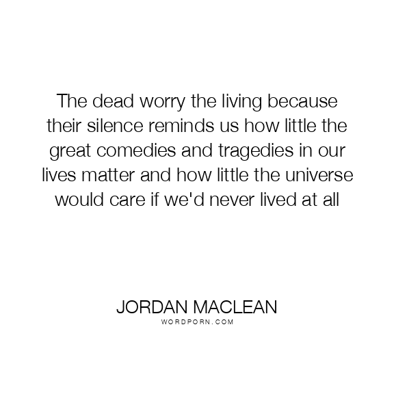 The dead worry the living because their silence reminds us how little the great comedies and tragedies in our lives matter and how little the universe would care if we'd never lived at all