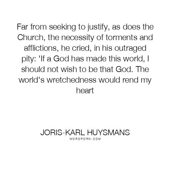 Far from seeking to justify, as does the Church, the necessity of torments and afflictions, he cried, in his outraged pity: 'If a God has made this world, I should not wish to be that God. The world's wretchedness would rend my heart