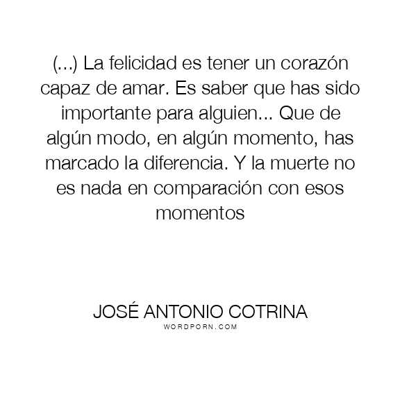 (...) La felicidad es tener un corazón capaz de amar. Es saber que has sido importante para alguien... Que de algún modo, en algún momento, has marcado la diferencia. Y la muerte no es nada en comparación con esos momentos