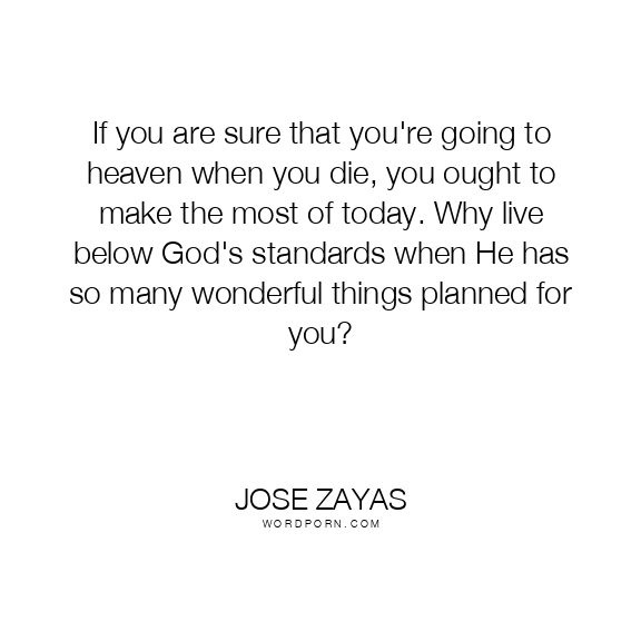 If you are sure that you're going to heaven when you die, you ought to make the most of today. Why live below God's standards when He has so many wonderful things planned for you?
