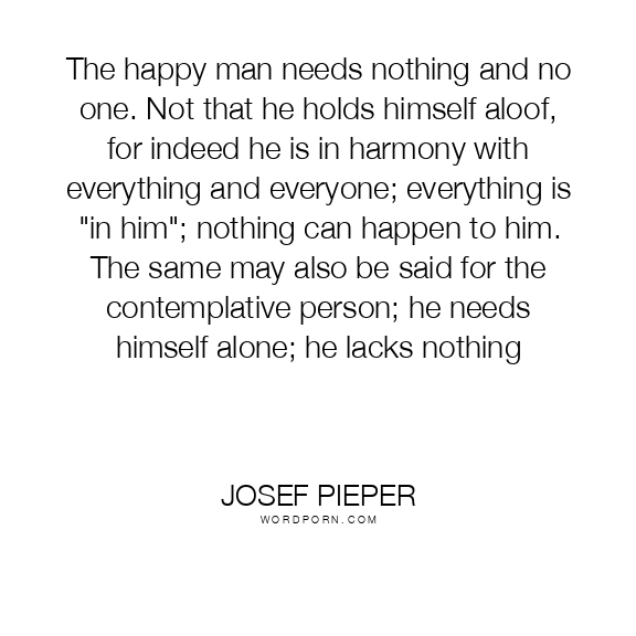 The happy man needs nothing and no one. Not that he holds himself aloof, for indeed he is in harmony with everything and everyone; everything is "in him"; nothing can happen to him. The same may also be said for the contemplative person; he needs himself alone; he lacks nothing