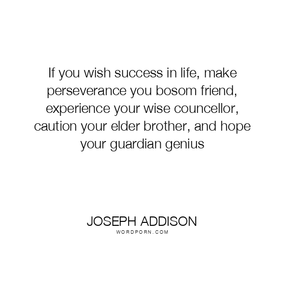 If you wish success in life, make perseverance you bosom friend, experience your wise councellor, caution your elder brother, and hope your guardian genius