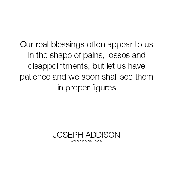 Our real blessings often appear to us in the shape of pains, losses and disappointments; but let us have patience and we soon shall see them in proper figures