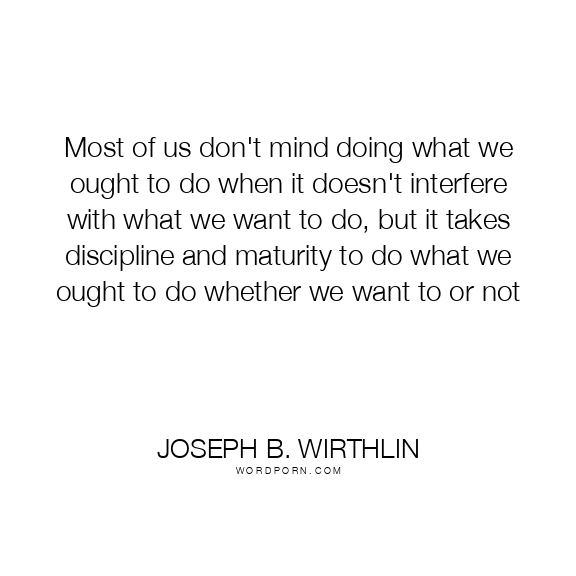 Most of us don't mind doing what we ought to do when it doesn't interfere with what we want to do, but it takes discipline and maturity to do what we ought to do whether we want to or not