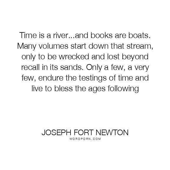 Time is a river...and books are boats. Many volumes start down that stream, only to be wrecked and lost beyond recall in its sands. Only a few, a very few, endure the testings of time and live to bless the ages following