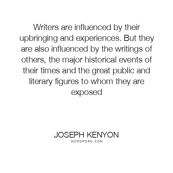 Writers are influenced by their upbringing and experiences. But they are also influenced by the writings of others, the major historical events of their times and the great public and literary figures to whom they are exposed