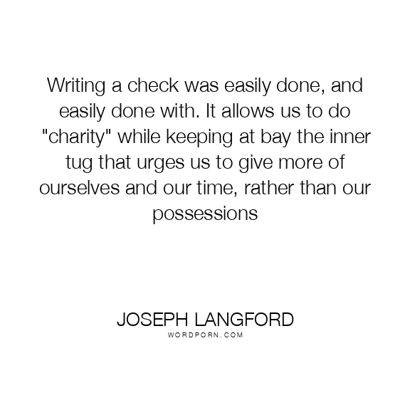 Writing a check was easily done, and easily done with. It allows us to do "charity" while keeping at bay the inner tug that urges us to give more of ourselves and our time, rather than our possessions