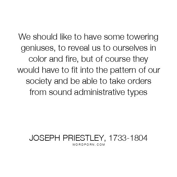 We should like to have some towering geniuses, to reveal us to ourselves in color and fire, but of course they would have to fit into the pattern of our society and be able to take orders from sound administrative types