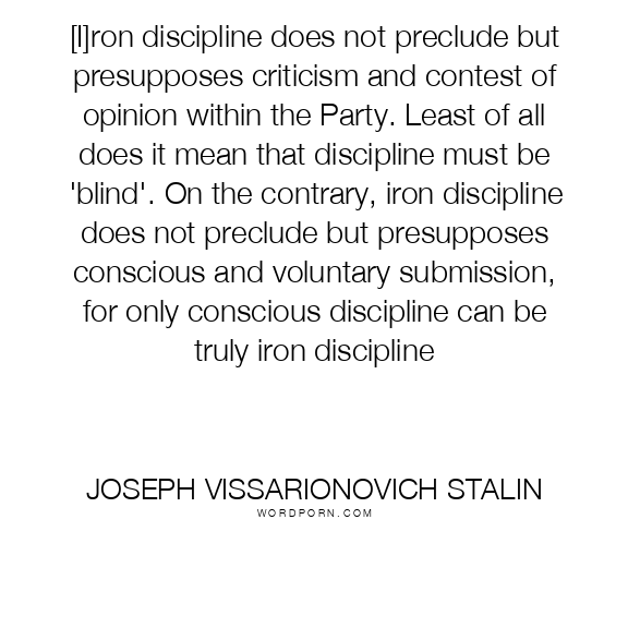 [I]ron discipline does not preclude but presupposes criticism and contest of opinion within the Party. Least of all does it mean that discipline must be 'blind'. On the contrary, iron discipline does not preclude but presupposes conscious and voluntary submission, for only conscious discipline can be truly iron discipline