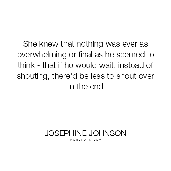 She knew that nothing was ever as overwhelming or final as he seemed to think - that if he would wait, instead of shouting, there'd be less to shout over in the end