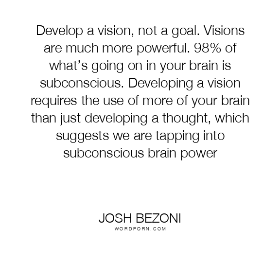Develop a vision, not a goal. Visions are much more powerful. 98% of what’s going on in your brain is subconscious. Developing a vision requires the use of more of your brain than just developing a thought, which suggests we are tapping into subconscious brain power