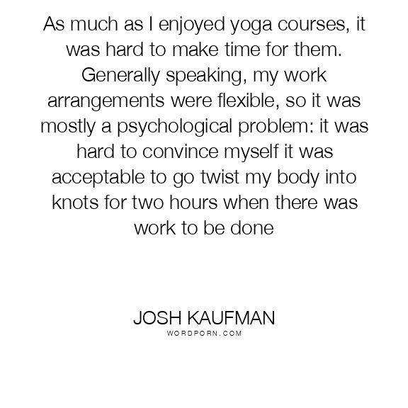 As much as I enjoyed yoga courses, it was hard to make time for them. Generally speaking, my work arrangements were flexible, so it was mostly a psychological problem: it was hard to convince myself it was acceptable to go twist my body into knots for two hours when there was work to be done