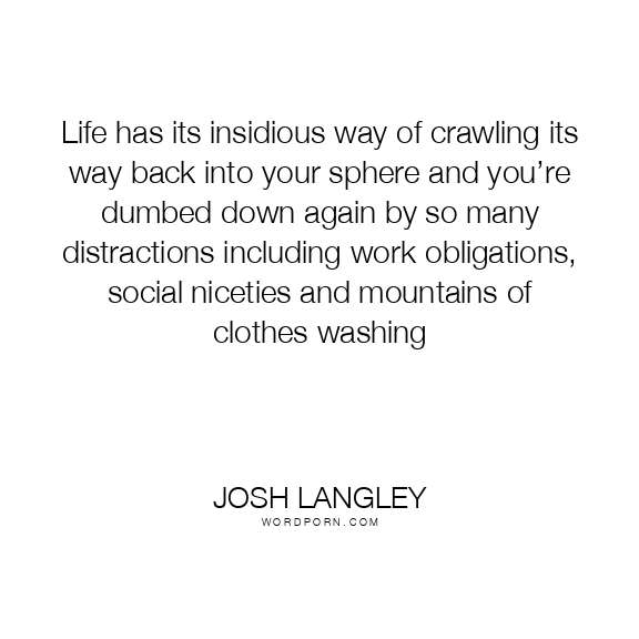 Life has its insidious way of crawling its way back into your sphere and you’re dumbed down again by so many distractions including work obligations, social niceties and mountains of clothes washing