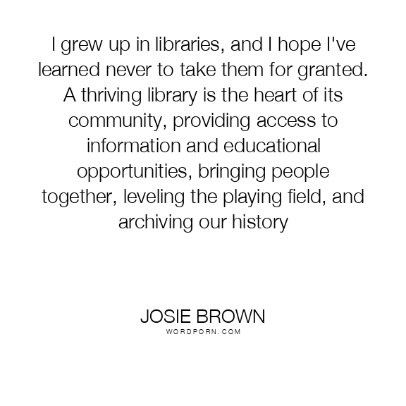 I grew up in libraries, and I hope I've learned never to take them for granted. A thriving library is the heart of its community, providing access to information and educational opportunities, bringing people together, leveling the playing field, and archiving our history