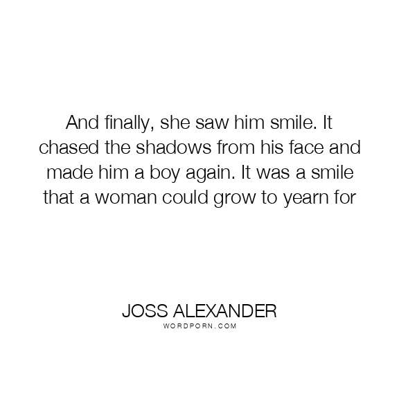 Copy Image And finally, she saw him smile. It chased the shadows from his face and made him a boy again. It was a smile that a woman could grow to yearn for Moms Typewriter A A SAVE THIS IMAGE
