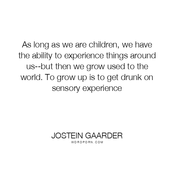 As long as we are children, we have the ability to experience things around us--but then we grow used to the world. To grow up is to get drunk on sensory experience