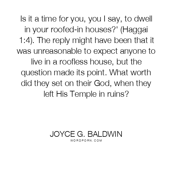 Is it a time for you, you I say, to dwell in your roofed-in houses?' (Haggai 1:4). The reply might have been that it was unreasonable to expect anyone to live in a roofless house, but the question made its point. What worth did they set on their God, when they left His Temple in ruins?