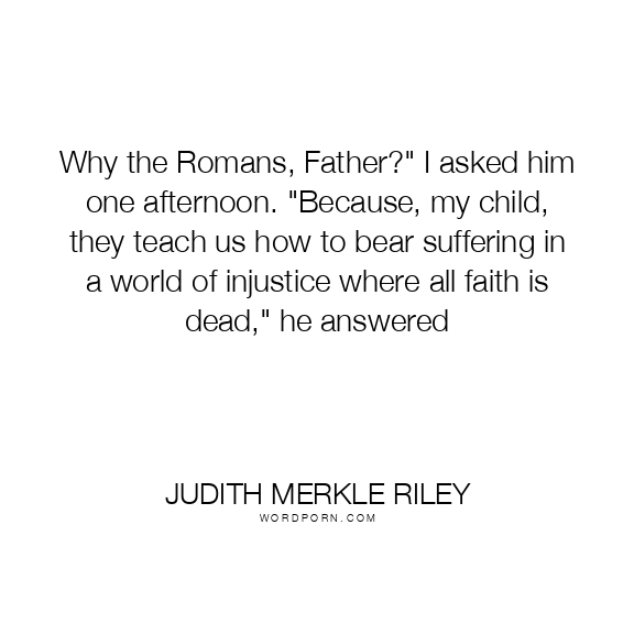 Why the Romans, Father?" I asked him one afternoon. "Because, my child, they teach us how to bear suffering in a world of injustice where all faith is dead," he answered