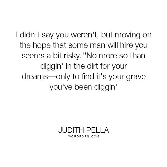 I didn't say you weren't, but moving on the hope that some man will hire you seems a bit risky.''No more so than diggin' in the dirt for your dreams—only to find it's your grave you've been diggin'