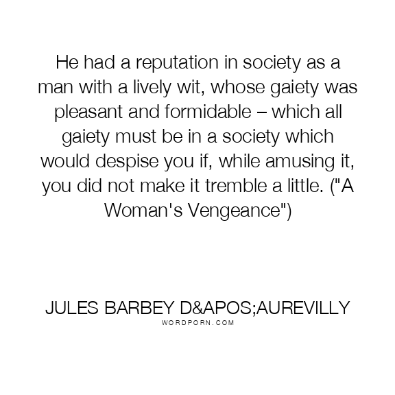 He had a reputation in society as a man with a lively wit, whose gaiety was pleasant and formidable – which all gaiety must be in a society which would despise you if, while amusing it, you did not make it tremble a little. ("A Woman's Vengeance")