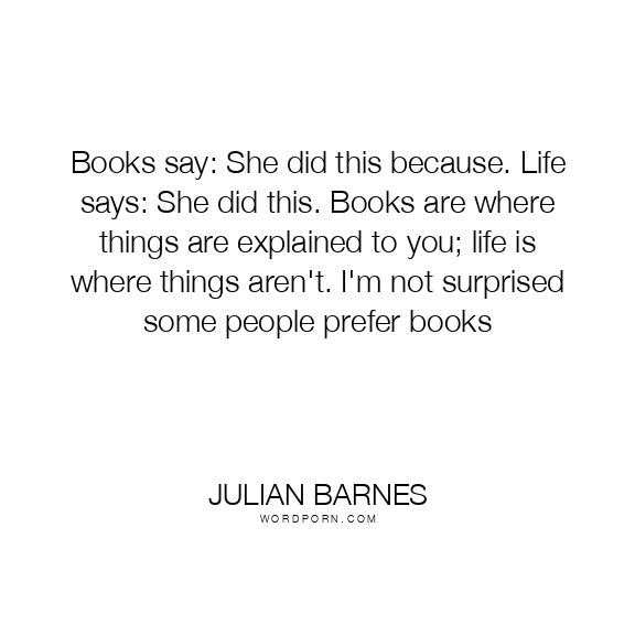 Books say: She did this because. Life says: She did this. Books are where things are explained to you; life is where things aren't. I'm not surprised some people prefer books