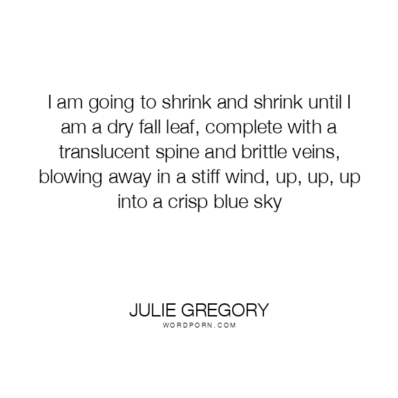 I am going to shrink and shrink until I am a dry fall leaf, complete with a translucent spine and brittle veins, blowing away in a stiff wind, up, up, up into a crisp blue sky