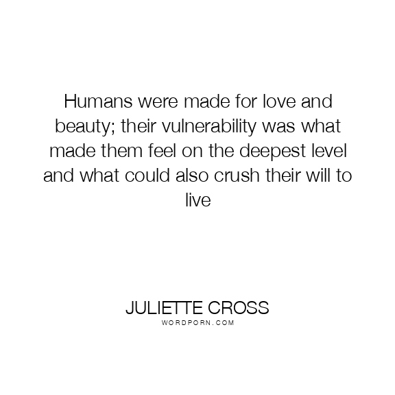 Humans were made for love and beauty; their vulnerability was what made them feel on the deepest level and what could also crush their will to live