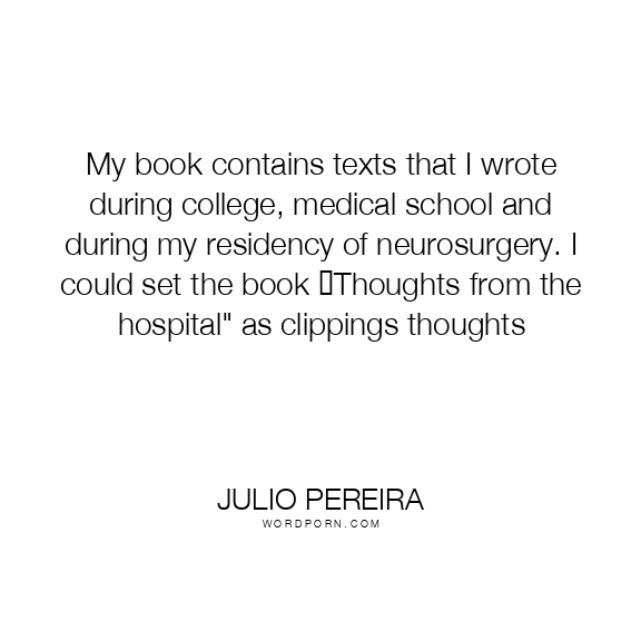My book contains texts that I wrote during college, medical school and during my residency of neurosurgery. I could set the book �Thoughts from the hospital" as clippings thoughts