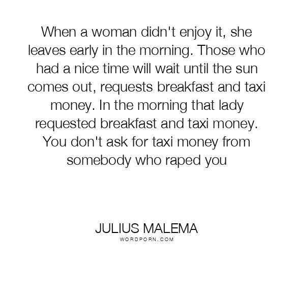 When a woman didn't enjoy it, she leaves early in the morning. Those who had a nice time will wait until the sun comes out, requests breakfast and taxi money. In the morning that lady requested breakfast and taxi money. You don't ask for taxi money from somebody who raped you