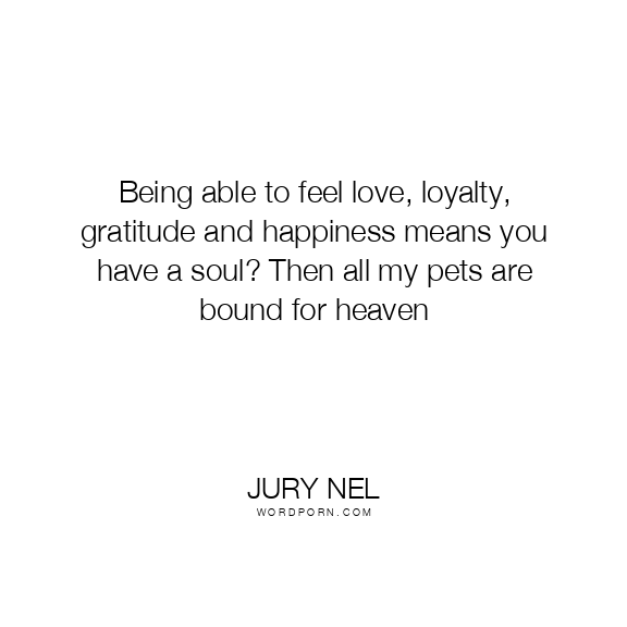 Being able to feel love, loyalty, gratitude and happiness means you have a soul? Then all my pets are bound for heaven