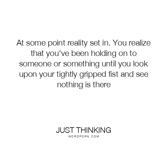 At some point reality set in. You realize that you've been holding on to someone or something until you look upon your tightly gripped fist and see nothing is there