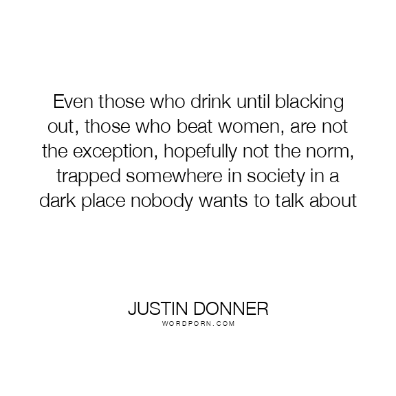 Even those who drink until blacking out, those who beat women, are not the exception, hopefully not the norm, trapped somewhere in society in a dark place nobody wants to talk about