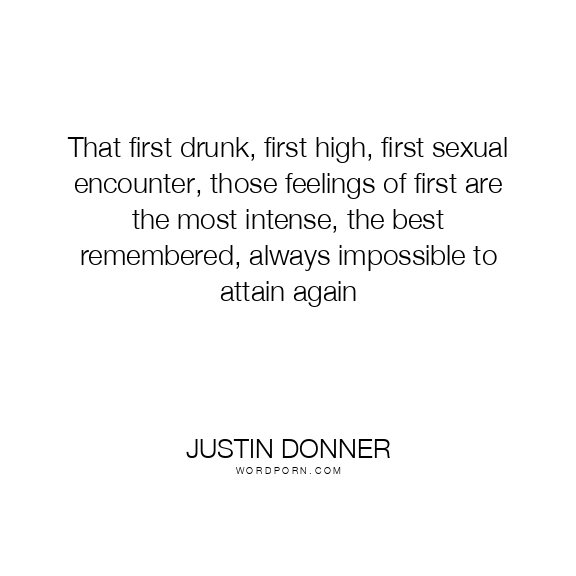 That first drunk, first high, first sexual encounter, those feelings of first are the most intense, the best remembered, always impossible to attain again