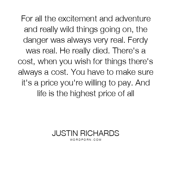 For all the excitement and adventure and really wild things going on, the danger was always very real. Ferdy was real. He really died. There's a cost, when you wish for things there's always a cost. You have to make sure it's a price you're willing to pay. And life is the highest price of all