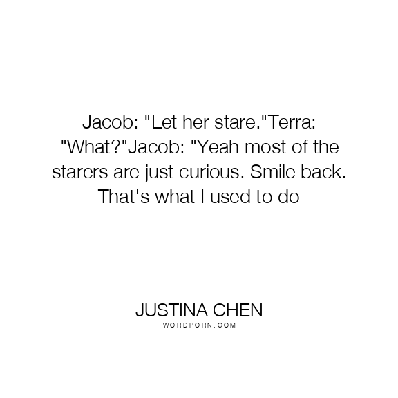 Jacob: "Let her stare."Terra: "What?"Jacob: "Yeah most of the starers are just curious. Smile back. That's what I used to do