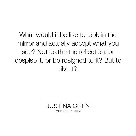 What would it be like to look in the mirror and actually accept what you see? Not loathe the reflection, or despise it, or be resigned to it? But to like it?