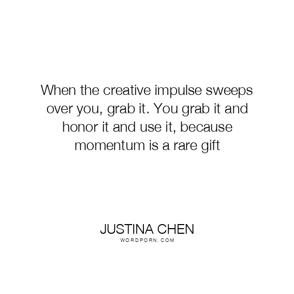 When the creative impulse sweeps over you, grab it. You grab it and honor it and use it, because momentum is a rare gift