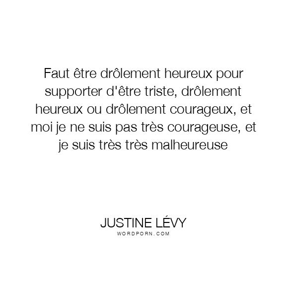 Faut être drôlement heureux pour supporter d'être triste, drôlement heureux ou drôlement courageux, et moi je ne suis pas très courageuse, et je suis très très malheureuse