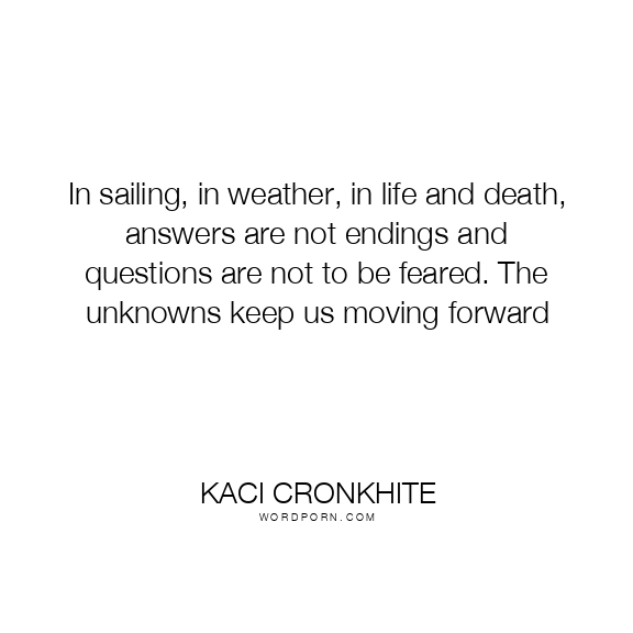 Copy Image In sailing, in weather, in life and death, answers are not endings and questions are not to be feared. The unknowns keep us moving forward Moms Typewriter A A SAVE THIS IMAGE