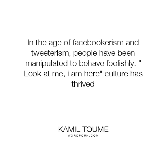 In the age of facebookerism and tweeterism, people have been manipulated to behave foolishly. " Look at me, i am here" culture has thrived