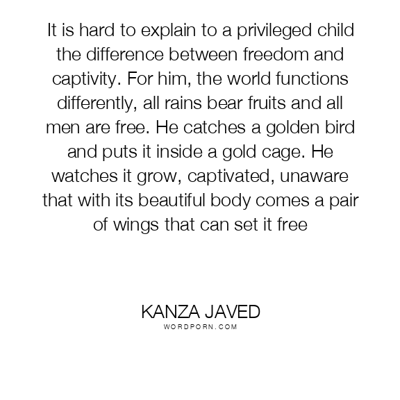 It is hard to explain to a privileged child the difference between freedom and captivity. For him, the world functions differently, all rains bear fruits and all men are free. He catches a golden bird and puts it inside a gold cage. He watches it grow, captivated, unaware that with its beautiful body comes a pair of wings that can set it free