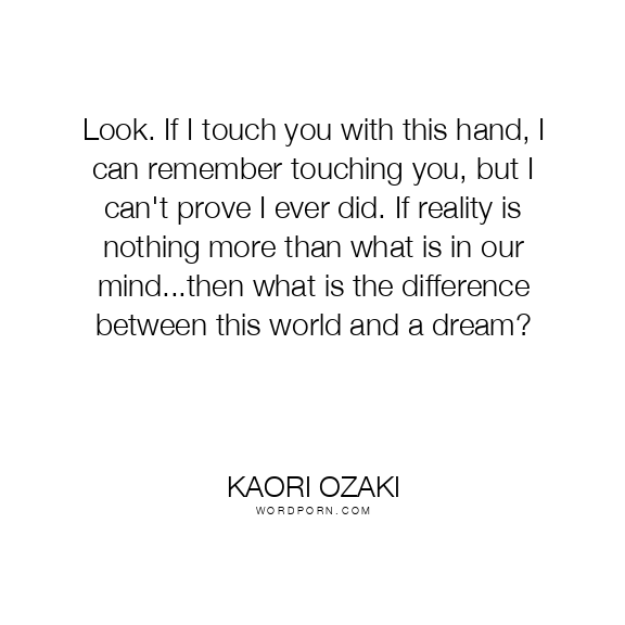 Look. If I touch you with this hand, I can remember touching you, but I can't prove I ever did. If reality is nothing more than what is in our mind...then what is the difference between this world and a dream?