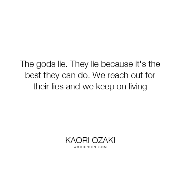 The gods lie. They lie because it's the best they can do. We reach out for their lies and we keep on living
