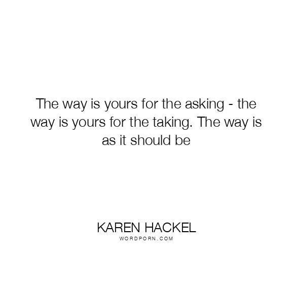 The way is yours for the asking - the way is yours for the taking. The way is as it should be
