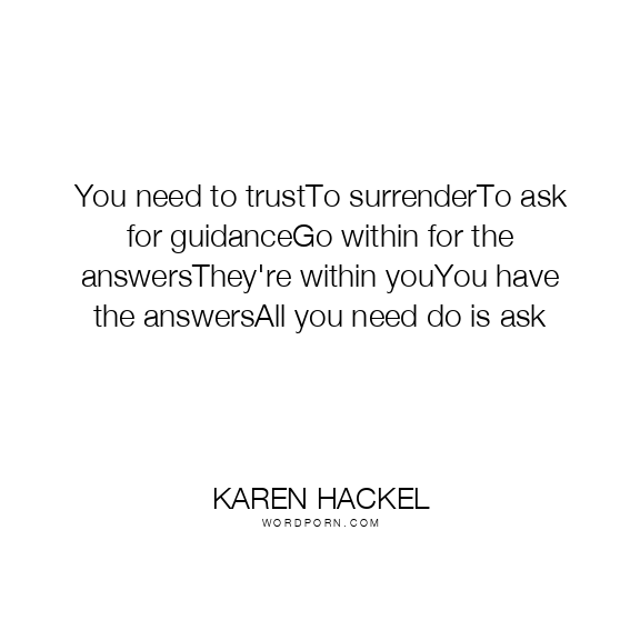 You need to trustTo surrenderTo ask for guidanceGo within for the answersThey're within youYou have the answersAll you need do is ask