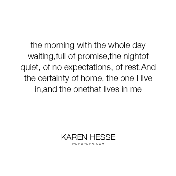 the morning with the whole day waiting,full of promise,the nightof quiet, of no expectations, of rest.And the certainty of home, the one I live in,and the onethat lives in me