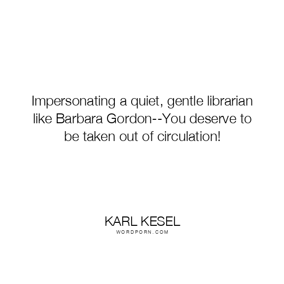 Copy Image Impersonating a quiet, gentle librarian like Barbara Gordon--You deserve to be taken out of circulation! Moms Typewriter A A SAVE THIS IMAGE