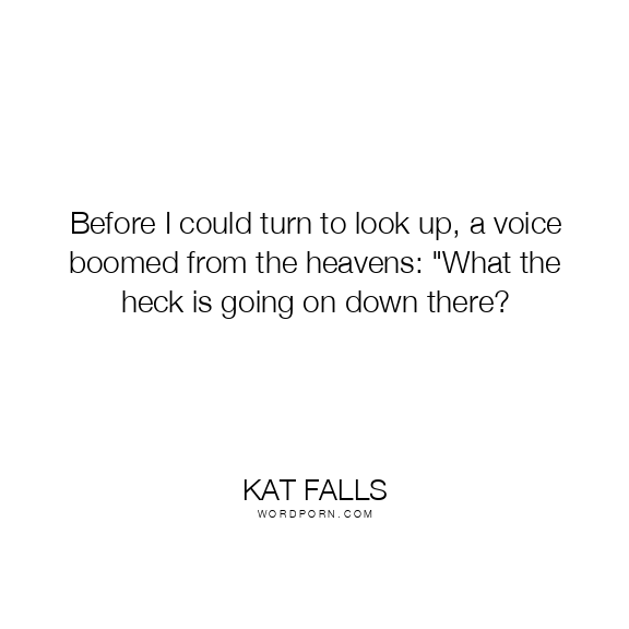 Before I could turn to look up, a voice boomed from the heavens: "What the heck is going on down there?