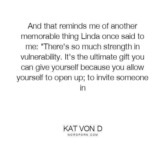 And that reminds me of another memorable thing Linda once said to me: "There's so much strength in vulnerability. It's the ultimate gift you can give yourself because you allow yourself to open up; to invite someone in