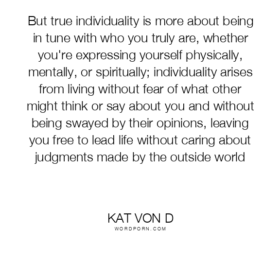 But true individuality is more about being in tune with who you truly are, whether you're expressing yourself physically, mentally, or spiritually; individuality arises from living without fear of what other might think or say about you and without being swayed by their opinions, leaving you free to lead life without caring about judgments made by the outside world
